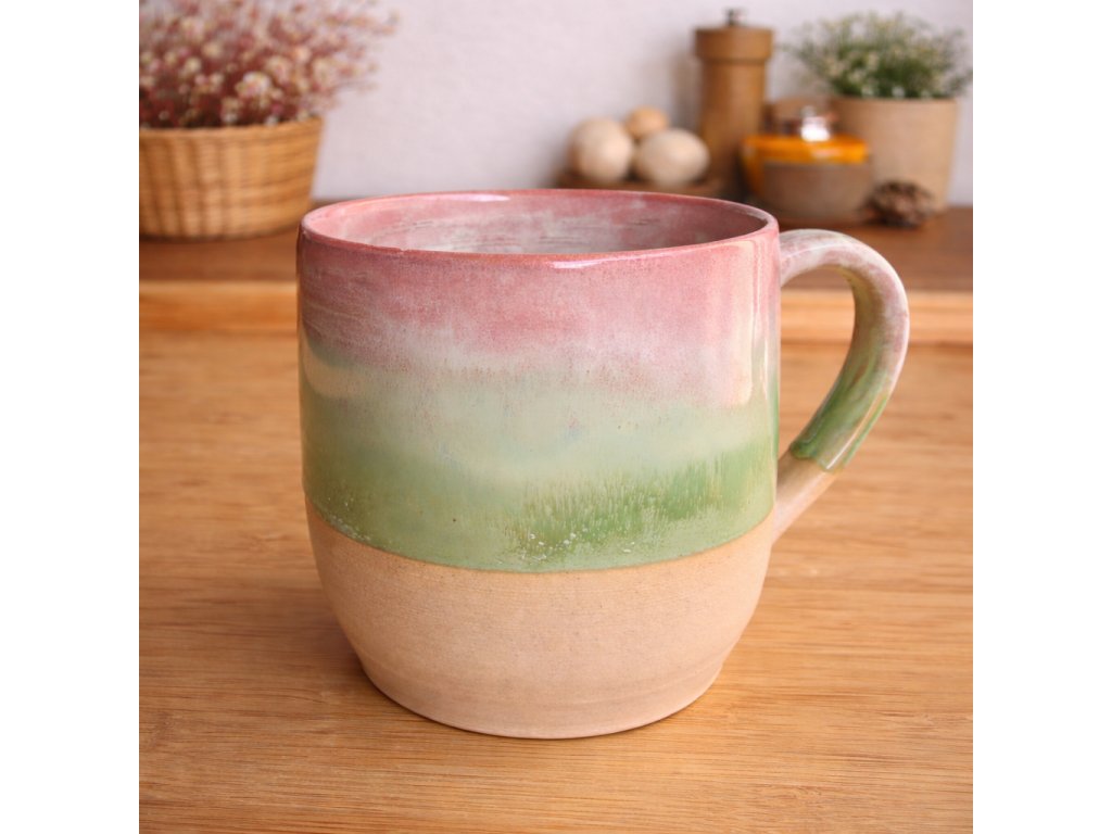 Hrnek o objemu 300 ml s jemně nepravidelným tvarem, který příjemně padne do ruky. Glazura Červánky vytváří jemný kontrast teplých a chladných tónů.