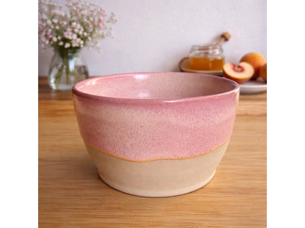 Nehrnek o objemu 200 ml s jemně nepravidelným tvarem, který příjemně padne do ruky. Glazura Růžová má jemný růžový základ s lehkými kresbami ve světlých až oranžovožlutých tónech.