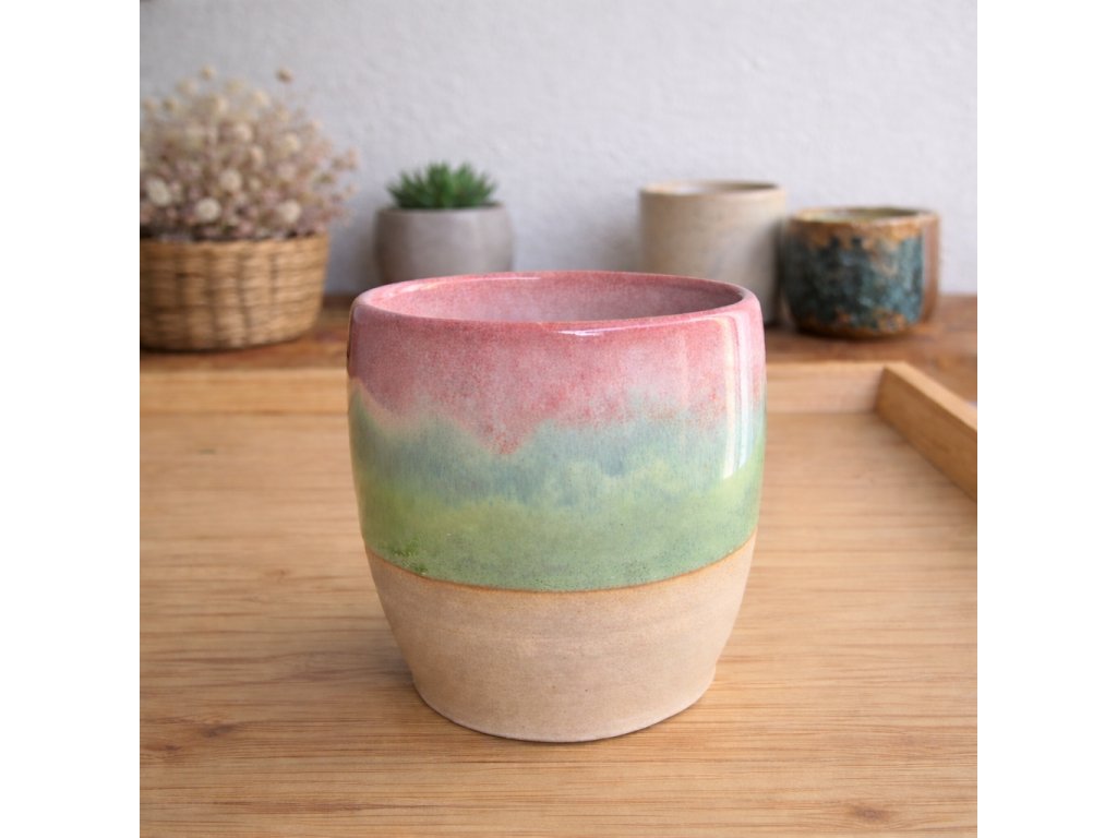 Nehrnek o objemu 90 ml s jemně nepravidelným tvarem, který příjemně padne do ruky. Glazura Červánky vytváří jemný kontrast teplých a chladných tónů.